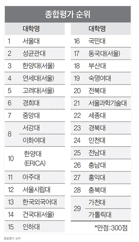 아니 애초에 서강대 이대가 어떻게 경희대 중앙대보다 낮음????