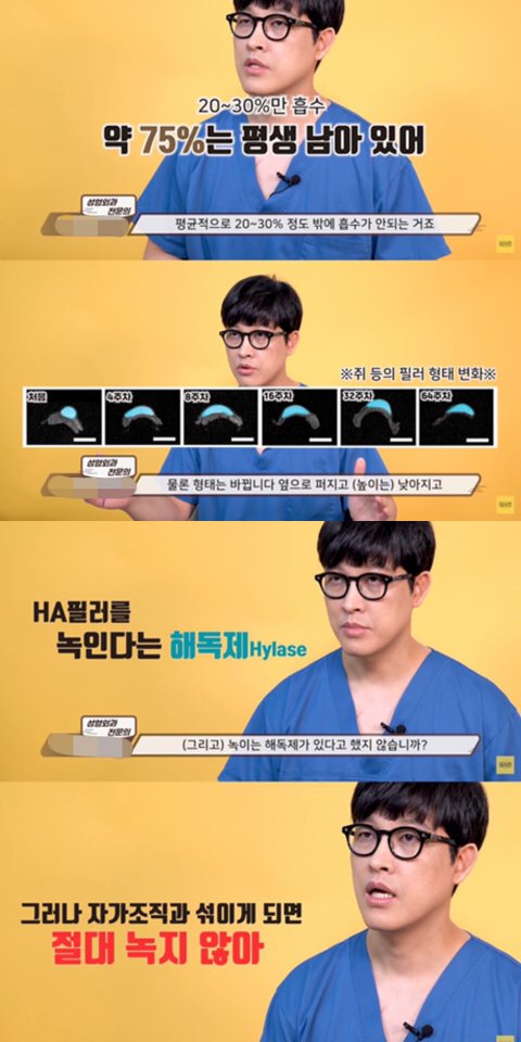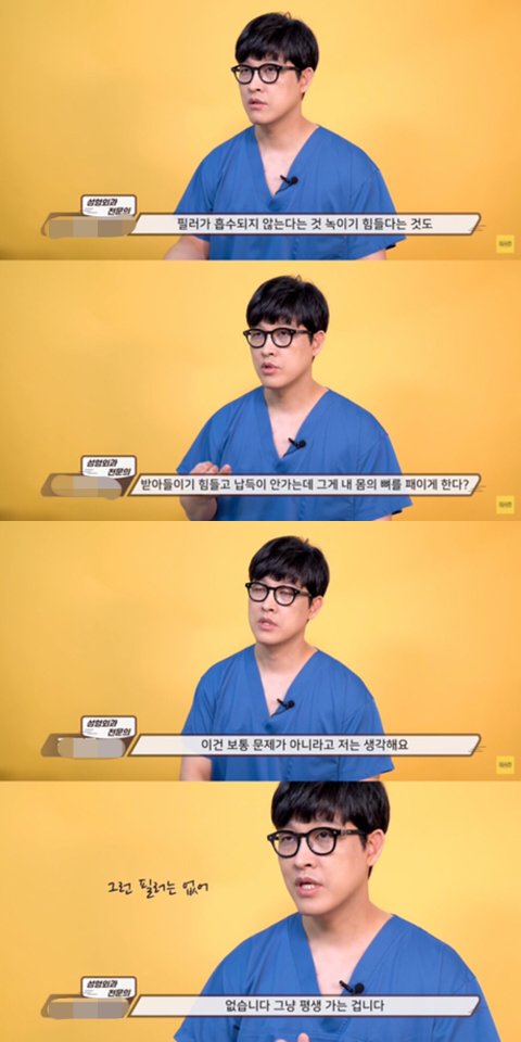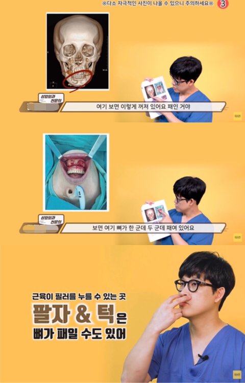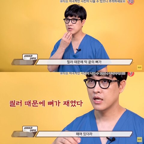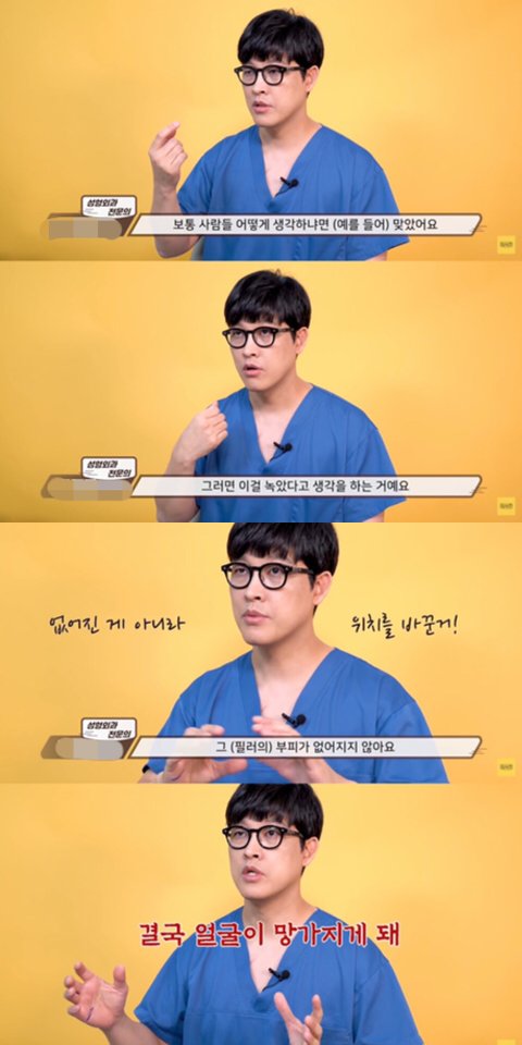 아니..저 사람 웃긴게 필러는 지양하라하면서 결론은 안면윤곽이나 양악은 자기한테 받으라고 함. 저기 유튜브가서 댓글들도 보면 사실상 필러보다 뼈를 깎는게 더 안좋은거 아니냐고 ㅈㄴ어이없어함.