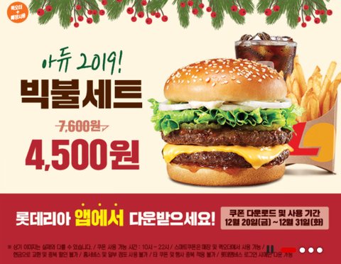 [롯데리아] 빅불세트 4500원 쿠폰