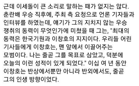 저런 성격인데 이창호9단에게는 항상 팬심팡팡이라 더 진심으로 들림ㅋㅋ