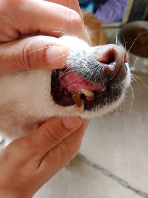 치석은 돌처럼 붙어있고 떡진털속에 빼빼마른 등골이 잡혀집니다