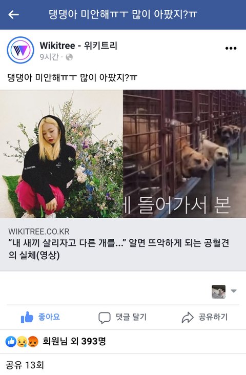 위키트리에 내 새끼 살리자고 다른 개를...라는 글이
