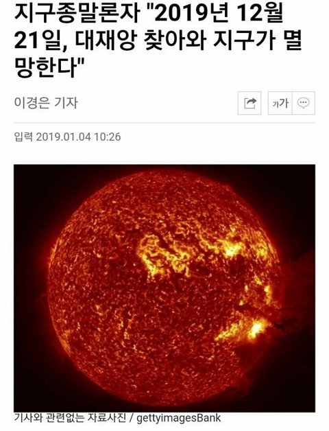 과학적으로보면 태양의 자기장 플립현상이 20~30만 주기로 일어나는데 2019년 오늘이 딱 주기가 들어맞는대