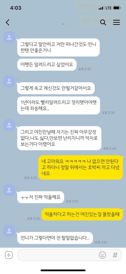 오픈채팅했던 전남친도 여자친구가 있는 채로 그짓을 했지만,