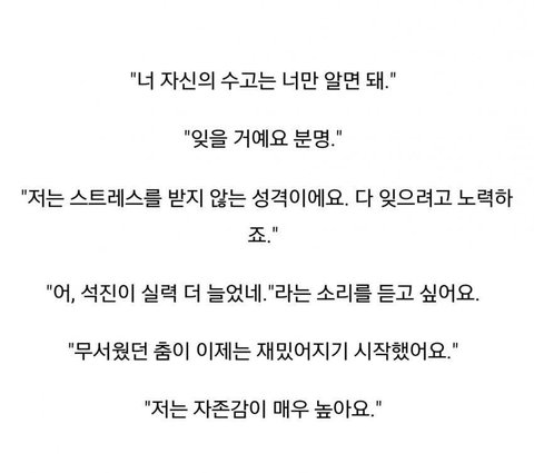 자존감 높고 긍정적인 석진이.