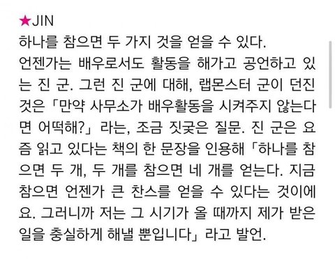 방탄 멤버 피셜 여유롭지만 치열하게 사는듯한 느낌을 준다는 사람 그모습이 잘 느껴졌던 본보 1 인터뷰. 그리고 되게 현실적인 사람