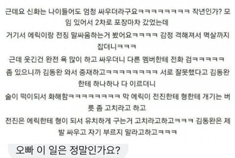 포장마차에서 멤버끼리 싸우는 그 아이돌