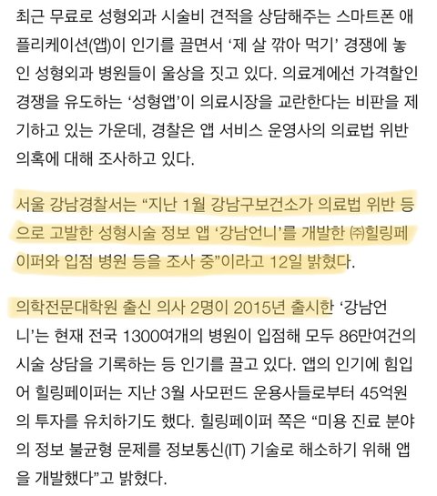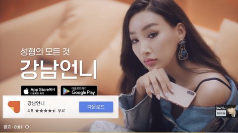 갑자기 "언니 없이 하지마!" 하면서 뜨는 강남언니 성형어플 광고