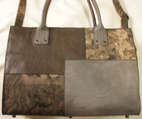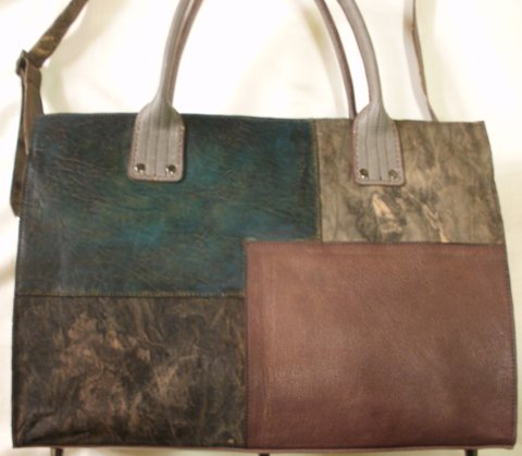 양가죽과 천연염색 우ㅝㄴ단을 매치하여 제작한 핸드메이드 토트백입니다.(마디샤)