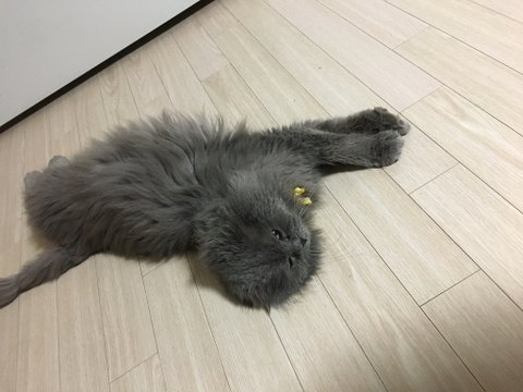 관절에 종양때문에 다리를 접지를 못해서 쩔뚝 거리고. 식빵 자세를 할 수 없어서 늘 저렇게 앞다리를 펴고 있음...
