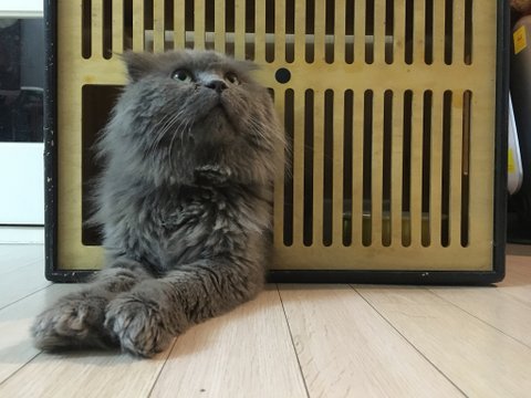 지난달 11월 27일 강아지와 산책 중 고양이 한마리를 발견함. 회색 장모 스코티시 폴드종.. 누가봐도 외출냥이도 길냥이도 아닌 이 아이를보고 당황스러웠는데 일단 가방에 있던 간식을 꺼내주자 허겁지겁 먹었고 애써 발길을 돌려 집으로 옴. 집에오고 너무 심란하고 자꾸 눈에 밟혀 다시 그곳으로 갔더니 캣맘이 바닥에 뿌려놓고간... 오래돼서 다 눌러붙은 사료를 주어먹고 있었음....
