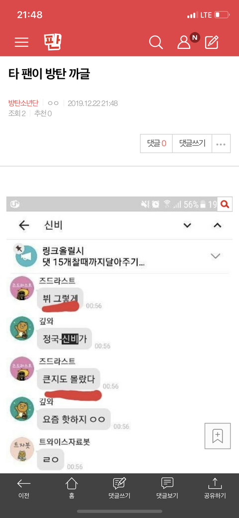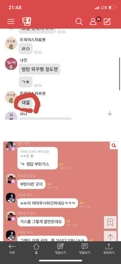 밑 타 팬 단톡방에 올라온 방탄 까글 여기서ㅇㅁㄱ