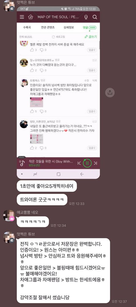 원스들 모인 단톡방에서 방탄 비하한 톡