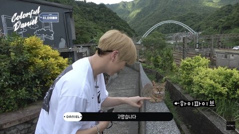 강다니엘 고먐미한테 인사하는거 너무 귀여워
