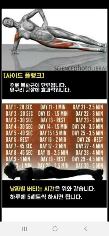 플랭크 초보자용 아닙니다 괜한 정보로 관절 박살나게 만들지 마세요 ~ 플랭크 하기전에 속근육이랑 관절 강화부터 하는게 맞습니다 플랭크부터 하다가는 관절 나가면 400 500만원 우습습니다 3개월~6개월 재활도 받아야합니다 모든 운동은 속근육 관절 인대강화가 이루어지고 나서 시작해야합니다