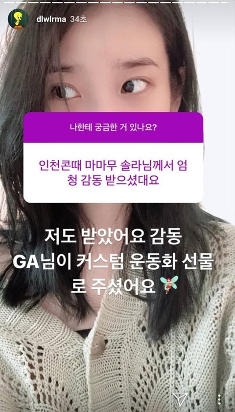 그리고 인스타 스토리 질문 드디어 시작한 아이유