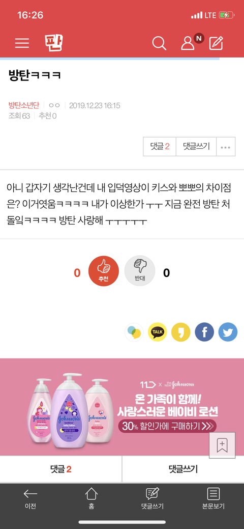 밑 방탄 ㅋㅋㅋ 여기서봐(댓도)