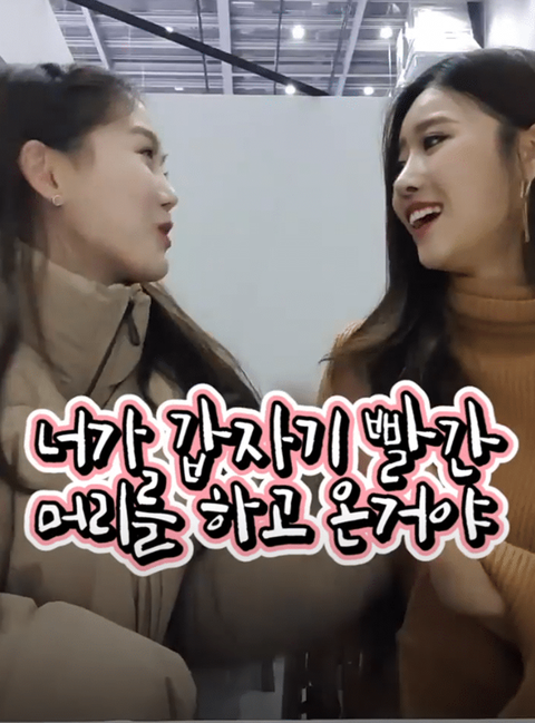 그랬는데 너가 갑자기 방송 촬영때 빨간 머리를 하구 온거양
