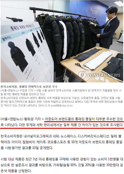 그래서 살만할 패딩들을 비교해봤더니