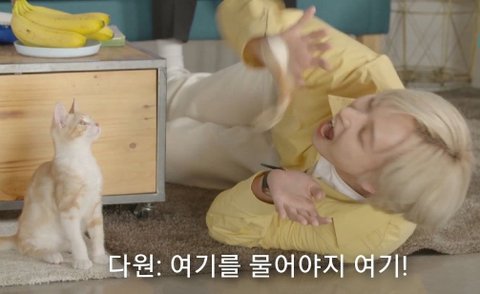 그리고 마지막에 고양이 인사시키려고 멤버들이 카메라 앞에 모이는데