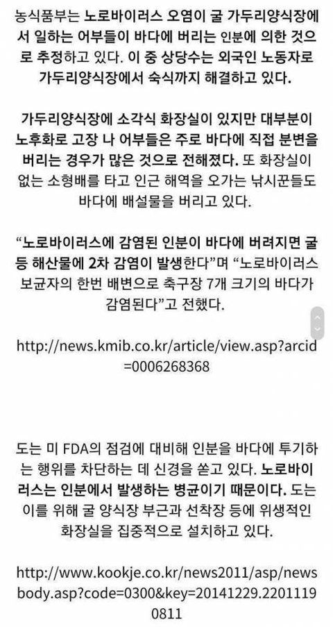 생굴 섭취후 노로바이러스 걸리는 이유