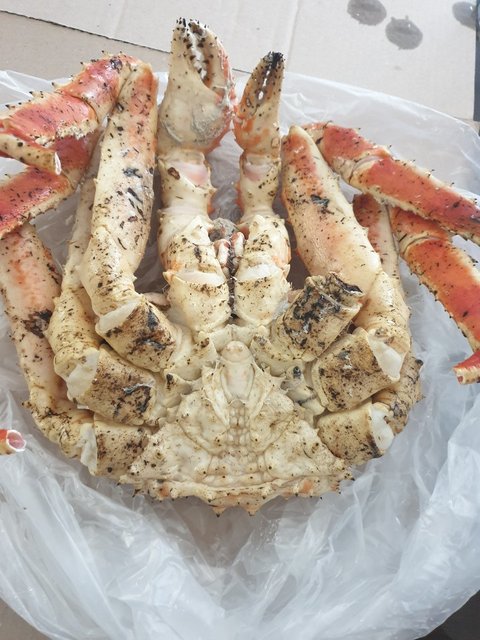 숙소에 도착해서 열어보니 다리도 하나 떨어지고 오래된듯한 킹크랩이 들어있었고