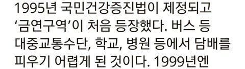 금연구역 자체가 없어서 1995년도부터 금연구역이 조금씩 지정되기 시작했다 함