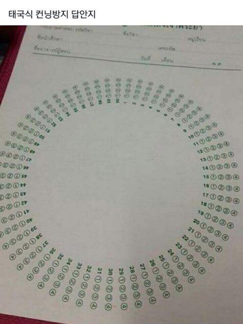 태국의 컨닝방지 답안지