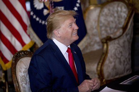 (사진 설명) 도널드 트럼프 미국 대통령이 24일(현지시각) 플로리다주 마러라고 리조트에서 크리스마스를 맞아 미군 장병들과 화상통화를 하며 웃고 있다. AP 연합뉴스