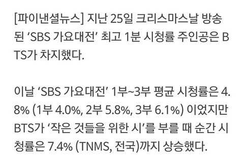 가요큰전 최고의 1분 및 평균시청자수+91만명