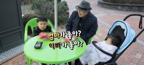 할아버지께서 '엄마가 좋아? 아빠가 좋아?'하고 물으심