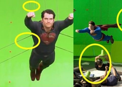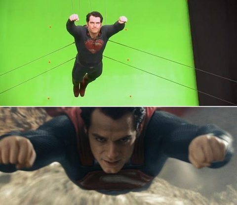 영화 <맨 오브 스틸>에서 활력 넘치는 장면과 시각 효과가 대량으로 투입되어 헨리 카빌이 연기한 슈퍼맨의 비행은 전체 CG로 촬영했을 것이라 생각하는 이들이 많다. 하지만 그린 스튜디오에서 헨리 카빌을 특수 장치용 줄에 고정시켜 그에게 비행장면을 연기하게 한 것이다. 여기에 대형 선풍기를 동원해 실제 비행을 하는 듯한 모습을 수동적으로 연출했다.