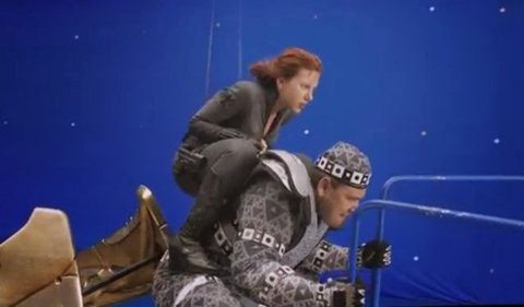 스칼렛 요한슨이 연기한 블랙 우도위의 위험천만한 공중 액션이 돋보인 장면으로 치타우리족을 조종해 방향을 바꾸는 씬은 요한슨이 단역 배우의 등뒤를 타면서 촬영된 장면이다.