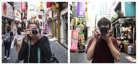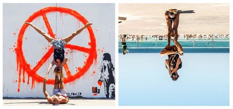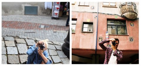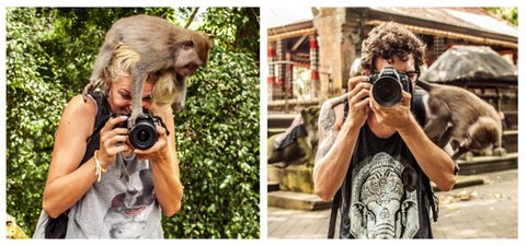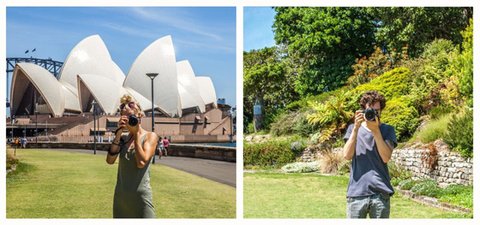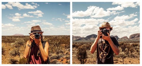 커플이 세계 여행 다니면서 같은 장소에서 바라보면서 서로 사진 찍은거!