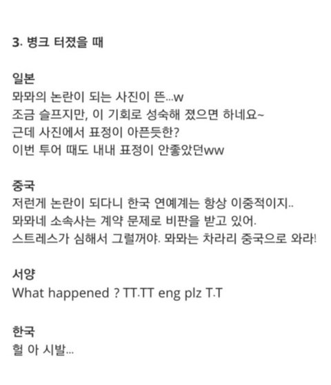 한중일 아이돌 덕질 반응차이