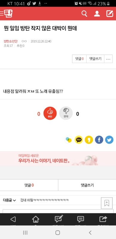 뭔 일임 방탄 작지 않은 대박이 뭔데