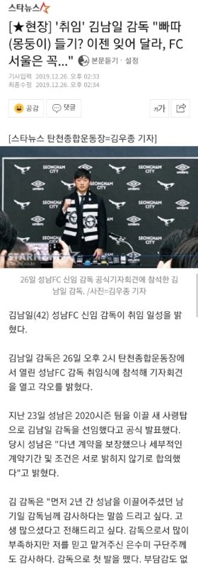'취임' 김남일 감독 "빠따(몽둥이) 들기? 이젠 잊어 달라, FC서울은 꼭..."