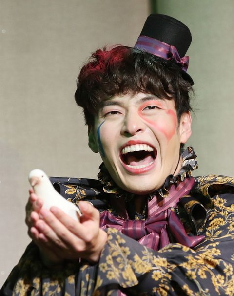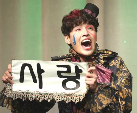 연극 프레스콜에 얼굴에 귀엽게 눈물과 하트를 그린 강하늘은