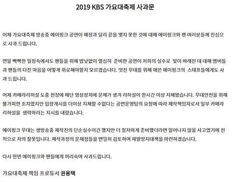 가요대축제 사과문 떴다