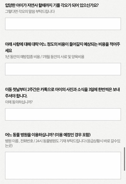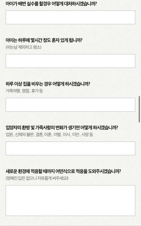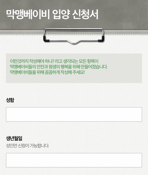 는 바로 웹툰 ‘노곤하개’ 작가이신 홍끼님이 작성한 입양 신청서임