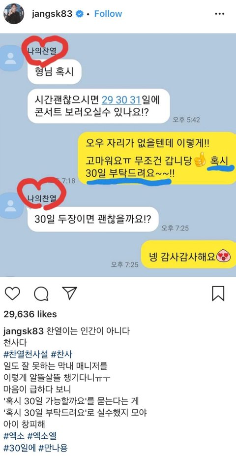 장성규한테 엑소콘 오라고 하는 찬열