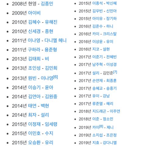 지금까지 디스패치가 터뜨린 열애설들임.....진짜 독하다