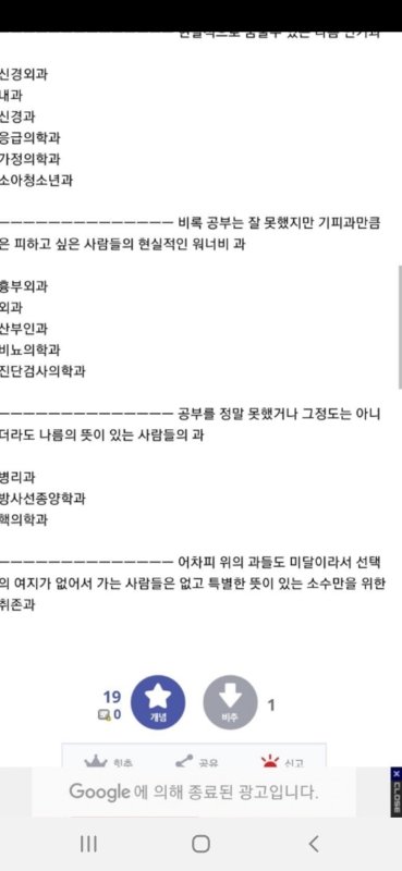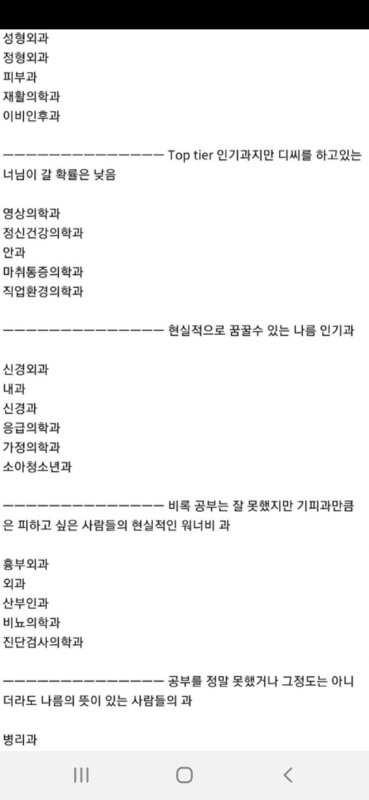 아이러니한 현실임. 진짜 환자를 살리는 과는 내과,산부인과,외과,소아과인데 비인기과로 공부를 잘할수록 이 과들과 멀어질 수 있음. 왜냐면 정부가 만들어놓은 기형적인 수가체제 및 고소위험성 때문에 ㅎㅎ이대로 가면부메랑으로돌아온다