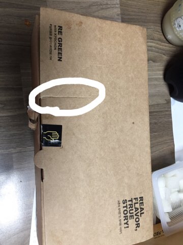 그래서 딱 받으니까 박스 왼쪽에 한 쪽이 살짝 주름졌더라고... 사진에서 보다시피.. 스티커 훼손된 건 무시해죠! 우리가 뜯은 거야.