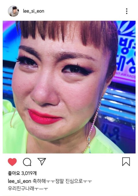 대상 수상 후, 달심이 SNS에 박나래 대상 축하하는 글을 올림