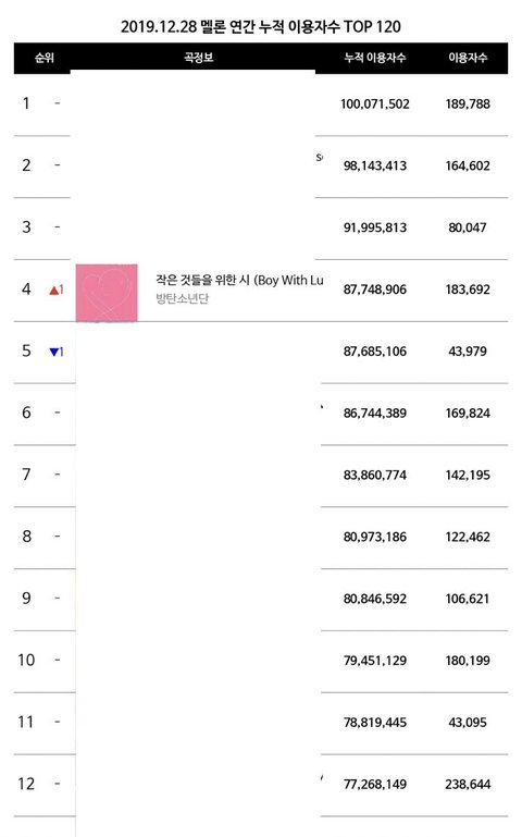 2019년 발매곡중 1위