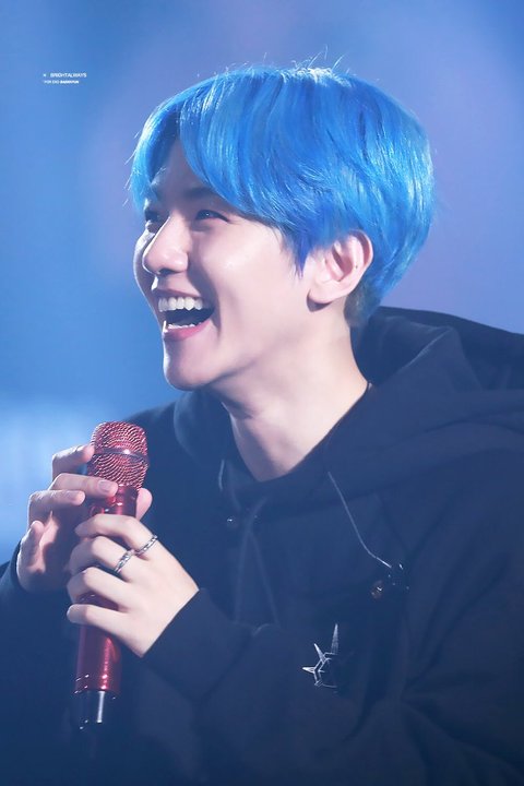 콘서트 후기 보니까 백현이 파란머리해서 눈에 확 띄는데 달려가는거 보면