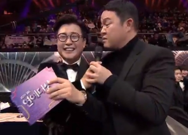 "(대상 후보된 것) 기쁜데요, 제가 모드가 변해서 억지로 좋은 표정을 짓지 못하겠다. 방금 우수 프로그램상('동상이몽2-너는 내 운명')도 제가 대표로 받았는데 제가 받을 만한 게 아니다. 제작진, 부부들이 애쓰는 프로그램이고, 저는 거기 나가는 것 자체가 말이 안 된다. 나름 열심히 하고 있으나 저는 지금 여러가지 복잡한 감정으로 2시간 앉아있는 것"이라고 말했다.