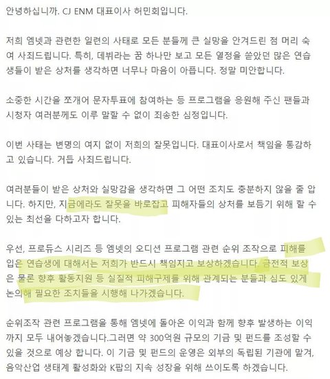 저거 너무 웃긴게 실제순위가 어떤지 밝히지도 않으면서 자기네가 알아서 피해보상을 하겠다고? 정말 믿음이 간다 야 ㅋㅋ 그리고 시청자들 문투나 다른투표도 시간이랑 돈쏟은거 어떻게 할건데? 결국 엑스원으로 씨제이 이익은 챙겨야겠다는 얘기잖아