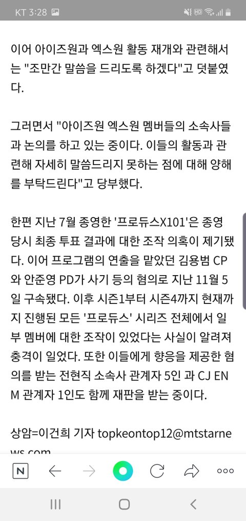 논의 중임 씨제이는 엓원 활동 한다그러면 지원해주겠다는거고 엓원 멤버,소속사가 싫다고 하면 그냥 해체임